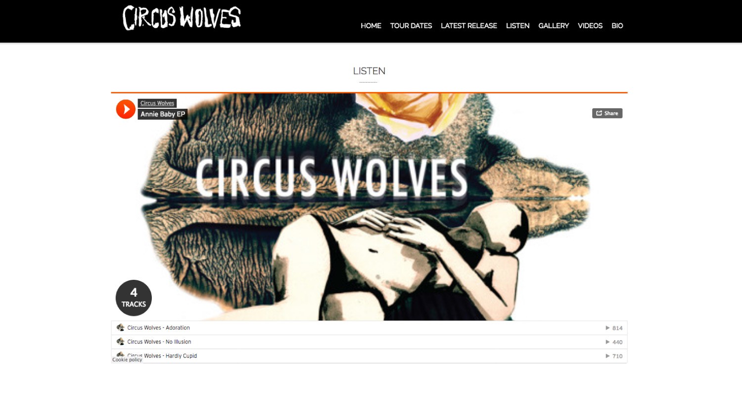 A flowing single page stucture with options for a great choice of layout modiules within it. Here it promotes an up and coming Indie Band called Circus Wolves.